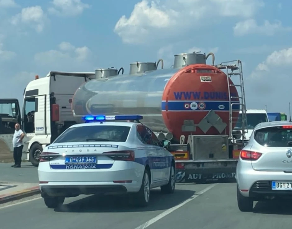 Kako se može videti na fotografijama objavljenim na Instagram stranici 192, pored duge kolone vozila nalazi se i policijsko vozilo.