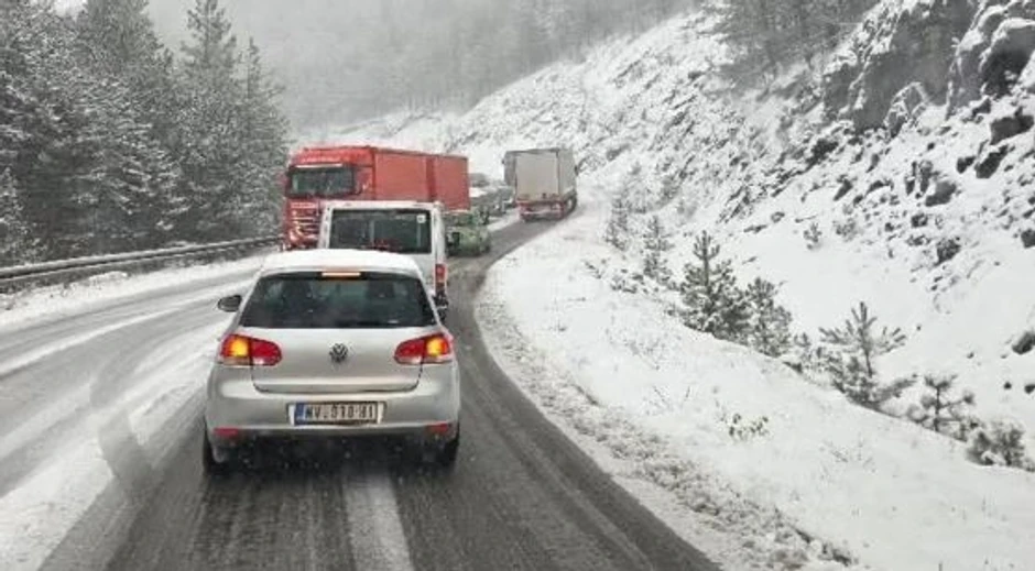Na objavljenim fotografijama se vidi da se u oba pravca nalazi kolona vozila.