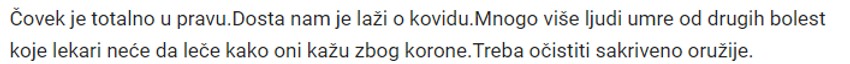 Jedan narodni predstavnik, kome bi interes građana Srbije koji zastupa u Narodnoj skupštini trebalo da bude na prvom mestu, dozvolio je sebi da u pitanje dovodi kompetenciju članova Kriznog štaba, svrstava se u red antivaksera, ali i da poziva da tokom praznika, kada bi okupljanja građana mogla da proizvedu katastrofalne posledice po zdravlje ljudi i zdravstveni sistem, poziva da "prestane priča o koroni".