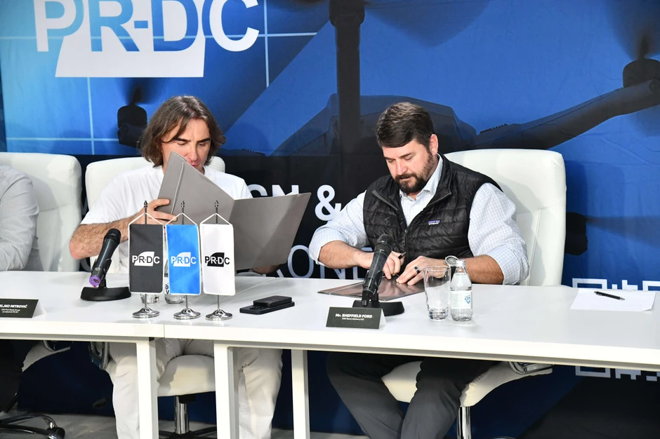 Miloš Petrašinović, vazduhoplovni inženjer i suvlasnik PR-DC takođe se obratio prisutnima istakavši da potpisivanje ovakvog ugovora mnogo znači, posebno jer će se znanja srpskih i američkih inženjera udružiti.