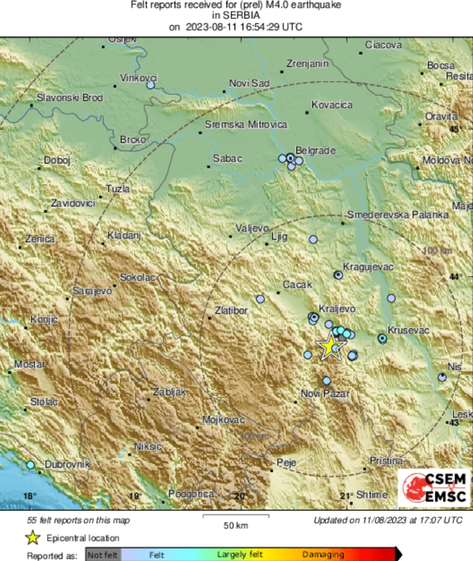 Snažan zemljotres od 3,7 stepena Rihterove skale pogodio je okolinu Vrnjačke Banje, a osetio se u Kraljevu, Kragujevu, Beogradu, Kruševcu...