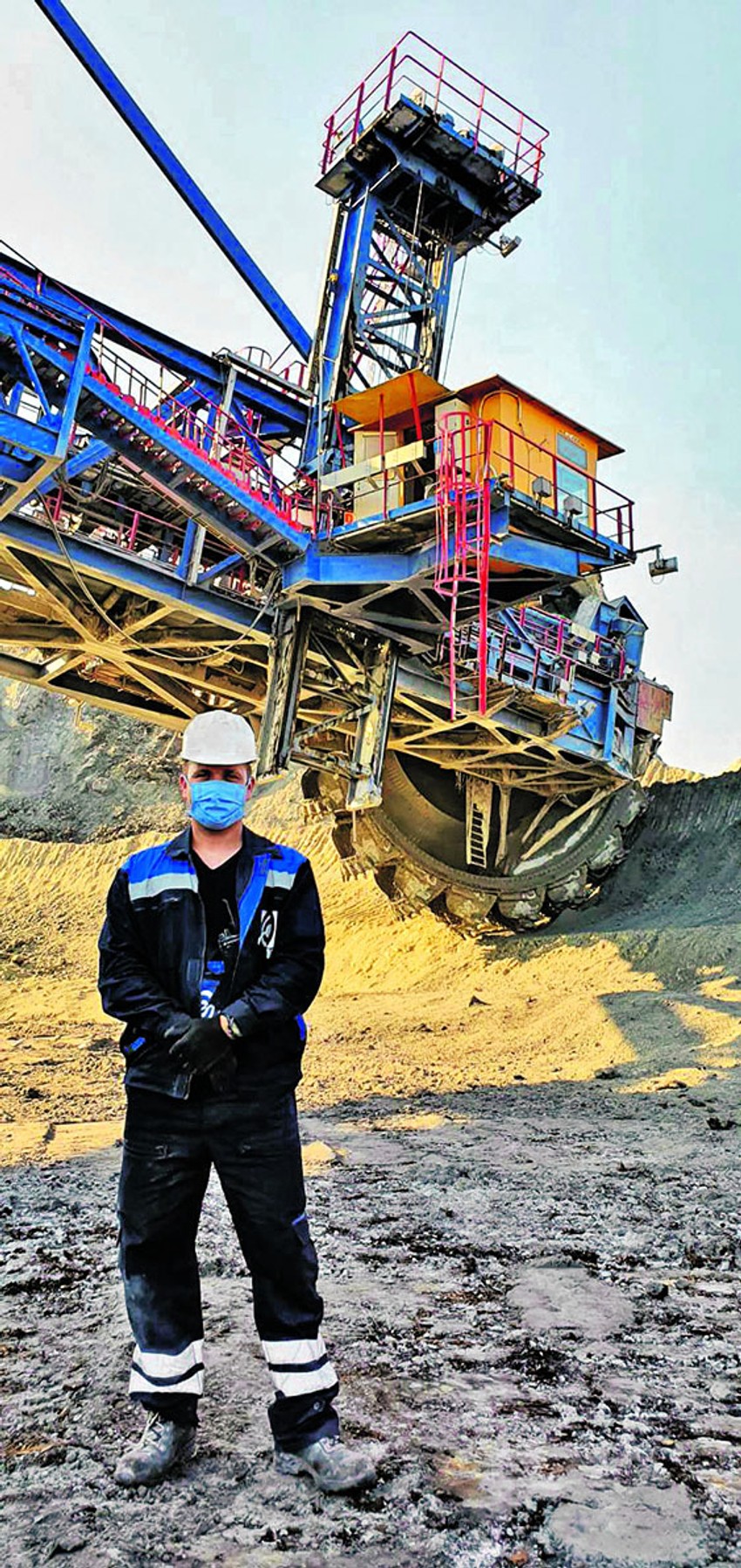- Polje B je najstariji površinski kop i u mojoj smeni radi oko 300 radnika. Svi su svesni odgovornosti koju ovaj posao inače nosi, a požrtvovanost radnika je otkad je proglašena pandemija veća. Svi su predaniji poslu, svesni da smo svi u borbi protiv nevidljivog neprijatelja. Sistem EPS-a je ozbiljan, a svima je na umu da je energent do kojeg mi dolazimo ono što ljudima daje smisao života, da bolnice i respiratori funkcionišu i rade jer "Kolubara" doprinosi proizvodnji struje. Zato dajemo sve od sebe, ne bismo li došli do rude i ispunili zacrtan plan. Podeljeni smo u tri smene, kop ne staje, a mi se smenjujemo na osam sati. Dođemo na posao opremljeni, predamo posao jedni drugima, ali se desi i da se, ako je na terenu ozbiljnija situacija, pre posla čujemo da bismo se spremili. Važno je da se bude usredsređen na poslu. Zašto? Dovoljno je reći da ova mašina u jednom satu iskopa čak 3.000 kubnih metara zemlje, a njegova dohvatna moć je čak 198 metara, a visina kopanja 28 metara. Svesni smo teške situacije i mera opreza, zato smo svi sveli kontakte sa drugim ljudima na minimum. Ili smo na poslu ili kod kuće. Imamo potvrdu za kretanje u policijskom času, ali je ne zloupotrebljavamo. Prevoz nam je češći, organizovan je u manjim grupama, a među nama nema kontakata bez rukavica. Posao nam je olakšalo i to što nam konstantno stiže oprema, od maski do dezinfekcione tečnosti, ali su i česte posete rukovodstva. To nam je važno jer znamo da imamo njihovu podršku.