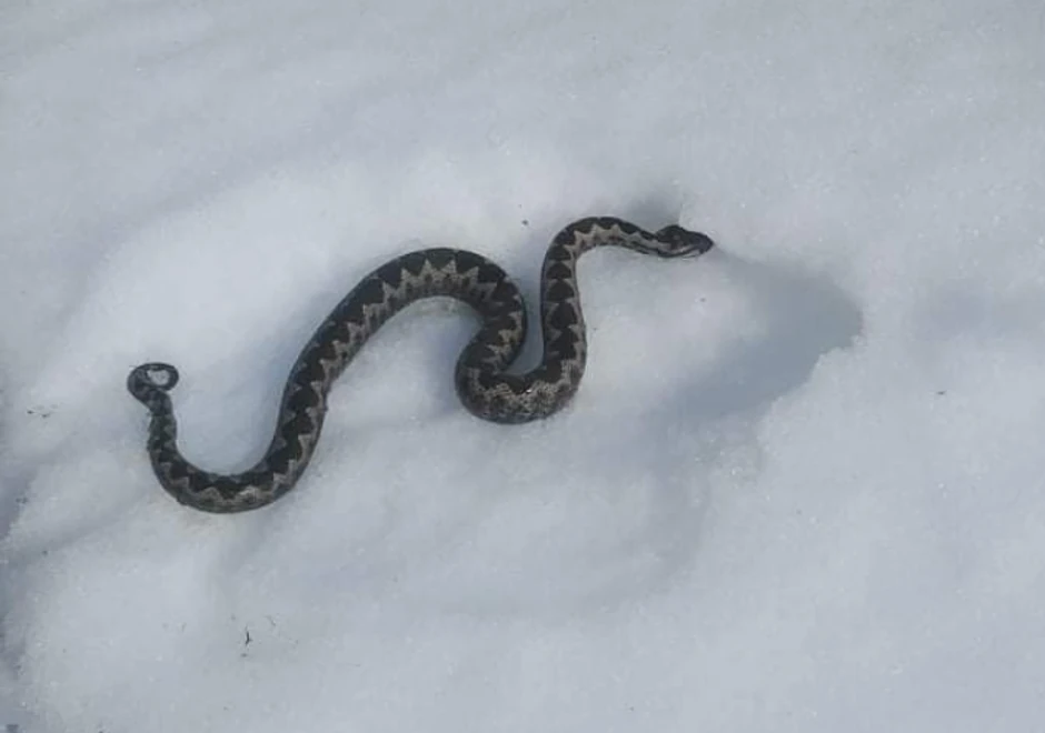 Neverovatan prizor iznenadio je čuvara zaštićenog područja Uvac, Milivoja Removića, u selu Miševići smeštenom na preko 1000 metara nadmorske visine. Na snežnom pokrivaču ugledao je ogromnog poskoka, što je izuzetno retka pojava imajući u vidu trenutno godišnje doba.