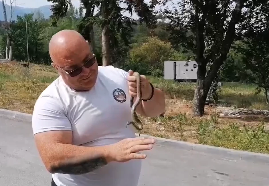 - Ostale su bezopasne. U svim intervencijama koje sam do sad imao, od 100 odsto, u 2 do 3 odsto su bile otrovne. Najveći broj su zmije koje su neotrovne i koje uopšte ne ugrožavaju ljude. Strah kod ljudi pravi najveći problem. Otrovne su poskok, kao najveća otrovnica i u Evropi, takođe, imamo i u šarku, ali ona se nalazi na 600 metara nadmorske visine i slabije se nalazi, i imamo planinskog šargana, ali on se nalazi na Šar planini, i veoma retko se može videti... Sve su to zaštićene vrste zakonski, i ne bi trebalo da se ubijaju, jer treba da shvatimo koliko je njihov značaj u prirodi - rekao je ranije Vladica i dodao da sve zmije koje uhvati u urbanoj sredini vraća u prirodu.