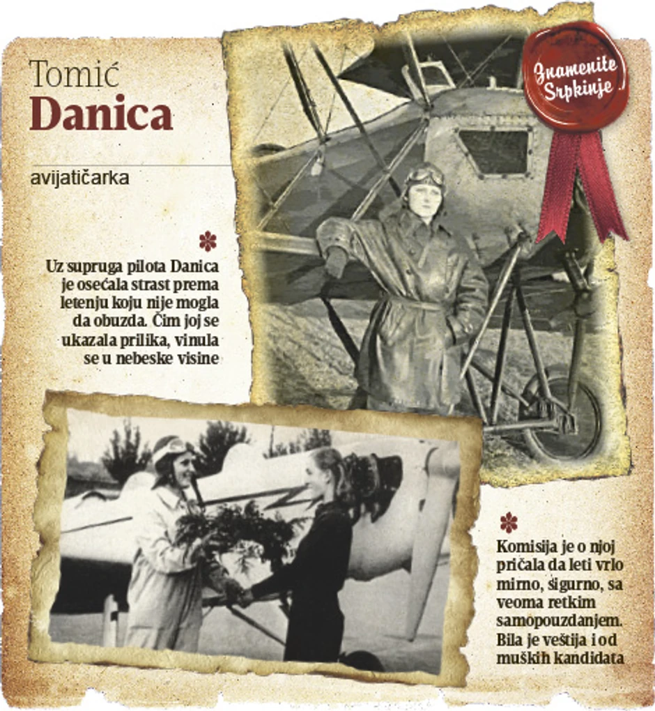 Danica Tomić bila je prva žena pilot u Srbiji. Bilo je to tridesetih godina prošlog veka, u doba kada je i u svetu vazduhoplovstvo važilo za mušku profesiju.