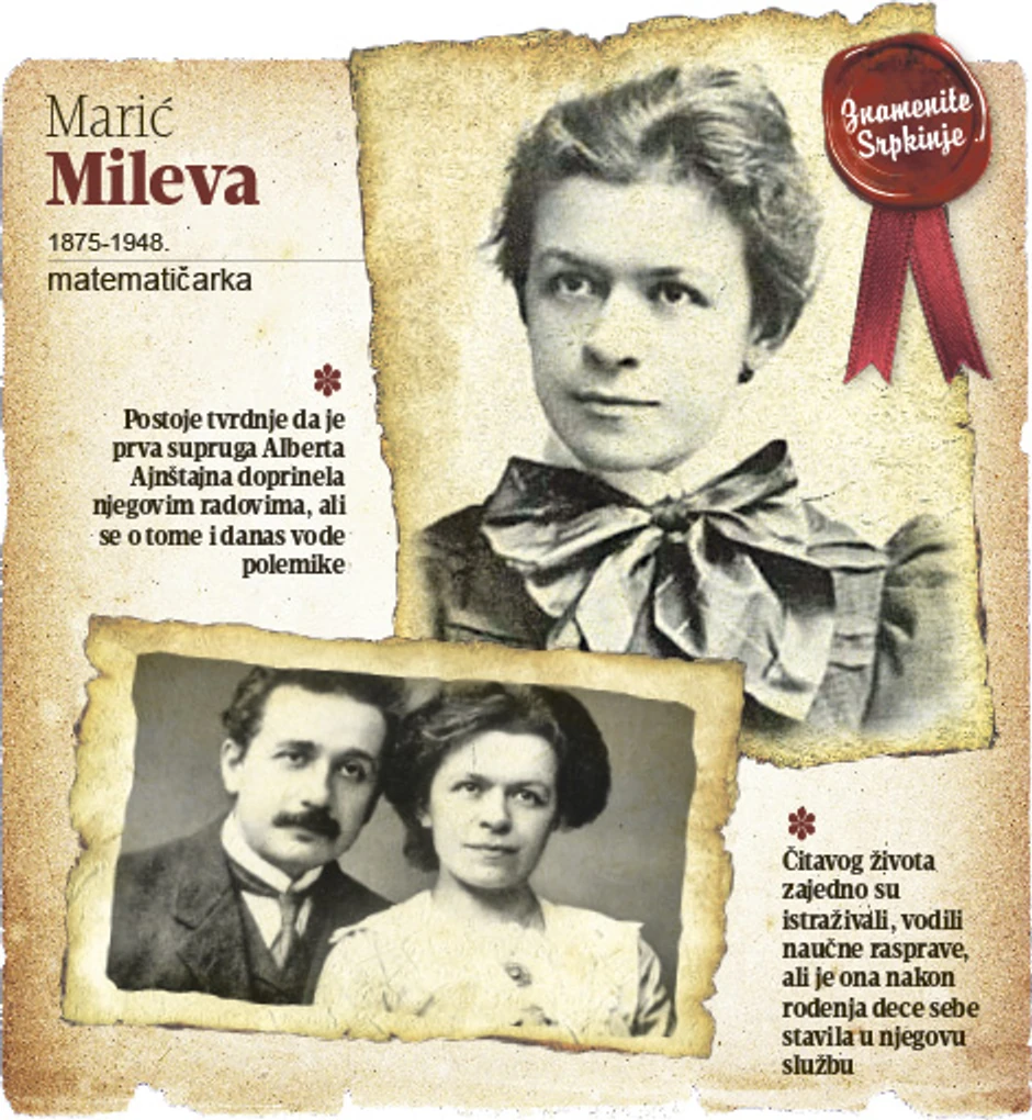 Mileva Marić-Ajnštajn bila je srpska matematičarka, prva supruga Alberta Ajnštajna, jednog od najgenijalnijih ljudi 20. veka. Postoje tvrdnje da je ona doprinela ranim Ajnštajnovim radovima, ali je stepen njenog učešća u otkrićima nepoznat i predmet je brojnih polemika.