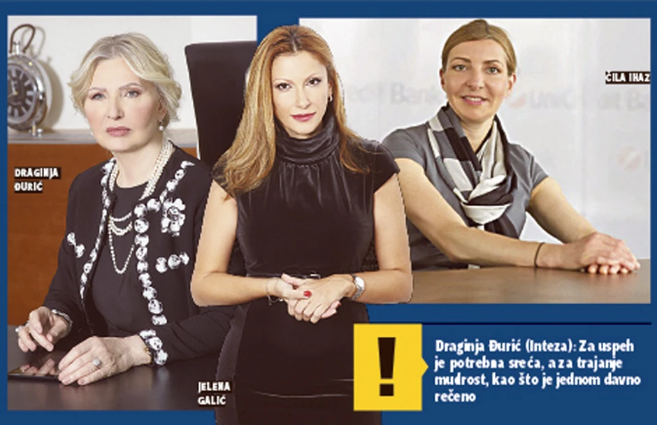 - Moje dugogodišnje profesionalno iskustvo stečeno kako na čelu Banke Inteza, tako i na prethodnim funkcijama u drugim institucijama, uverilo me je da se do održivog i trajnog poslovnog uspeha dolazi isključivo napornim radom, velikim zalaganjem i posvećenošću, kao i spremnošću da se usavršavate i prilagođavate promenama. Zato mi je i drago što u našoj zemlji u poslednje vreme sve veći broj žena zauzima rukovodeće pozicije, posebno u bankarskom sektoru. Kao predsednik IO Banke Inteza izuzetno sam ponosna na svoje saradnike i ceo svoj tim, jer smo već dugi niz godina vodeća banka na domaćem tržištu. Kako je to jednom davno rečeno - za uspeh je potrebna sreća, a za trajanje mudrost.