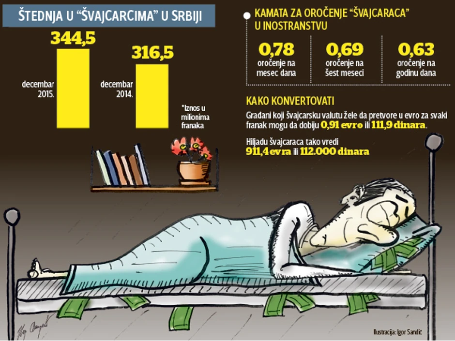 Tako bi u slamaricu uskoro moglo da ode 344,5 miliona švajcarskih franaka ili 318,7 miliona evra, odnosno oko 4,2 odsto od ukupno štednje, koliko iznosi ukupna štednja u švajcarskoj valuti u Srbiji.