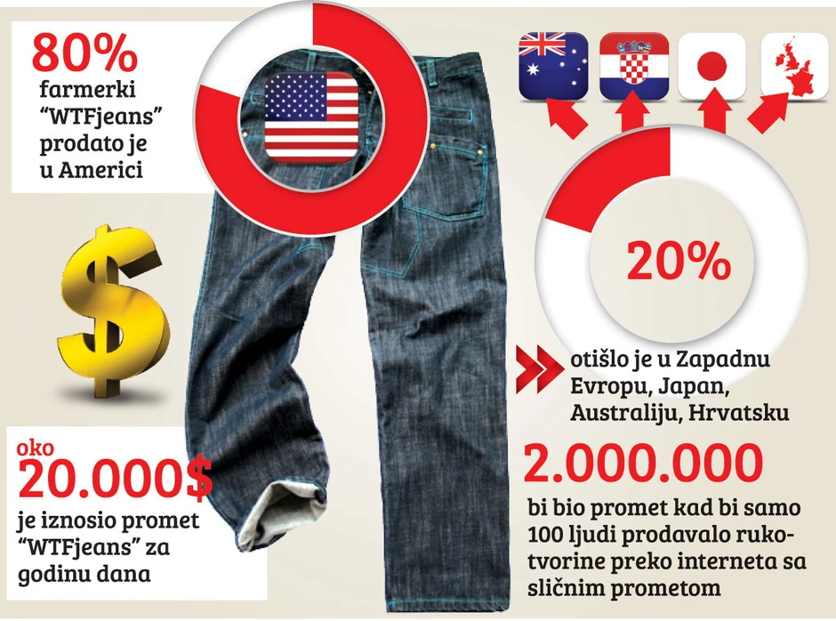 Peđa Pušelja, osnivač internet prodavnice “WTF jeans” i proizvođač ovog brenda, odlučio je da izađe iz tog posla u Srbiji i proda firmu Hrvatima jer se, kako kaže, kod nas internet trgovcima bacaju balvani pod noge, a država umesto da podstiče, sabotira izvoz preko interneta.