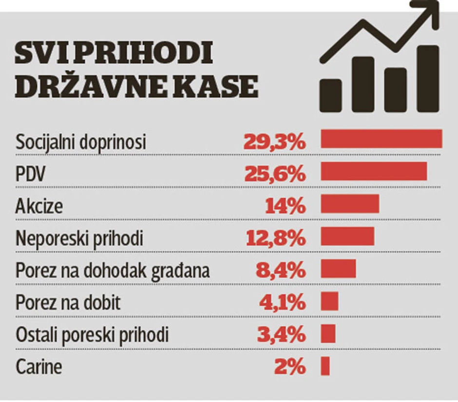 - Najveći deo poreskih prihoda odnosi se na uplatu PDV-a u iznosu od 45,7 milijardi dinara. U aprilu se uplaćuju tromesečne obaveze po osnovu PDV-a što je, u najvećoj meri, dovelo do tako visokog prihoda. Posle PDV-a, najveći iznos je od akciza, 20 milijardi dinara - ističe se u ovom izveštaju.