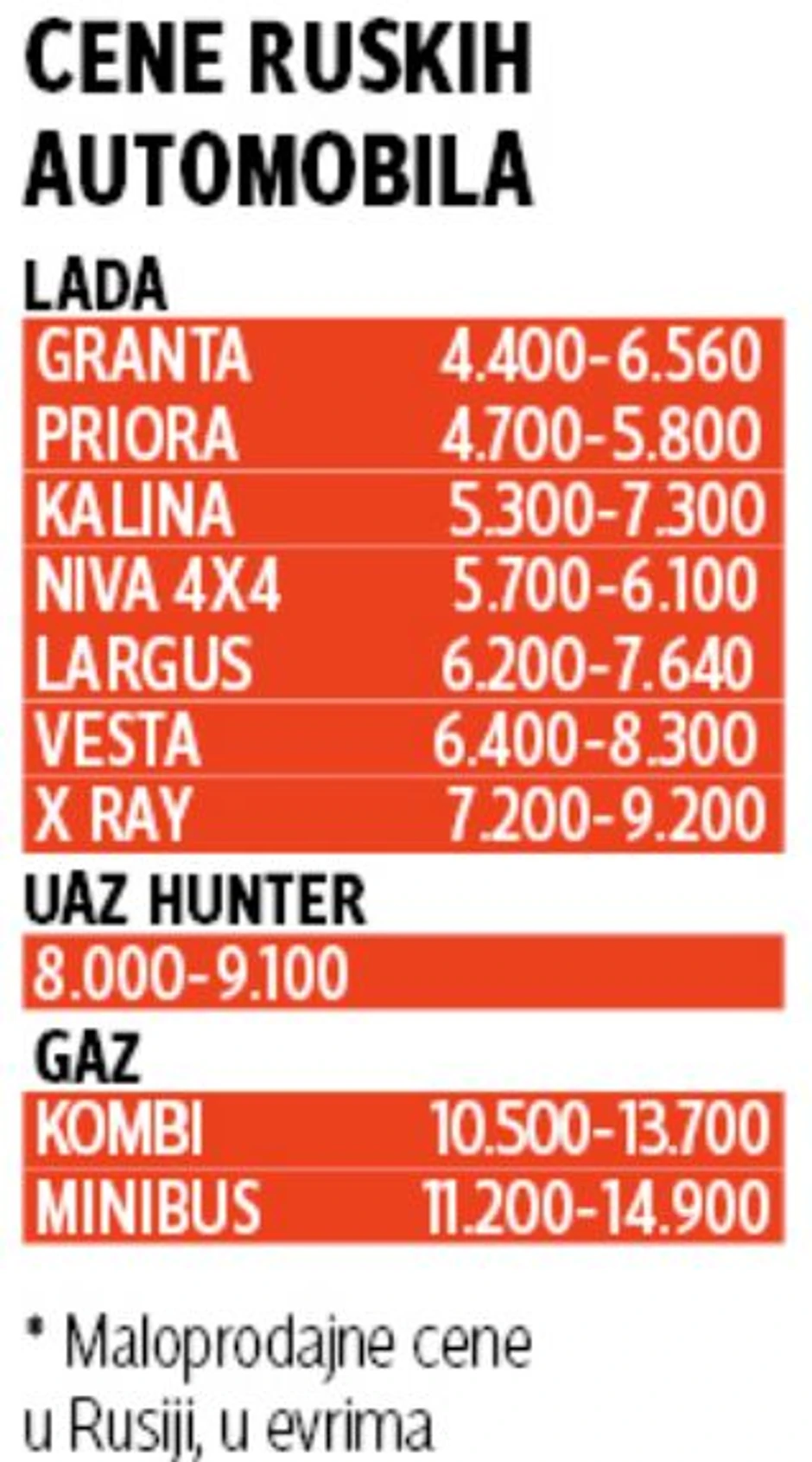 U Srbiju bi, navode ruski mediji, recipročno trebalo da stigne oko 5.000 ruskih vozila bez carine. Ta vozila su veoma povoljna, pa se tako "lada granta" u Rusiji može kupiti za svega 5.500 evra.