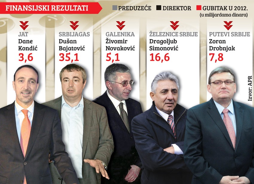 Država je za prvih devet meseci ove godine izgubila 17,3 milijarde dinara jer je morala da otplaćuje kredite javnih preduzeća koja su bila nesposobna i da ih vrate. Kako saznaje “Blic”, iz budžeta je najviše dato za „Puteve Srbije“ i „Železnice“, slede „Srbijagas“, JAT i „Galenika“.