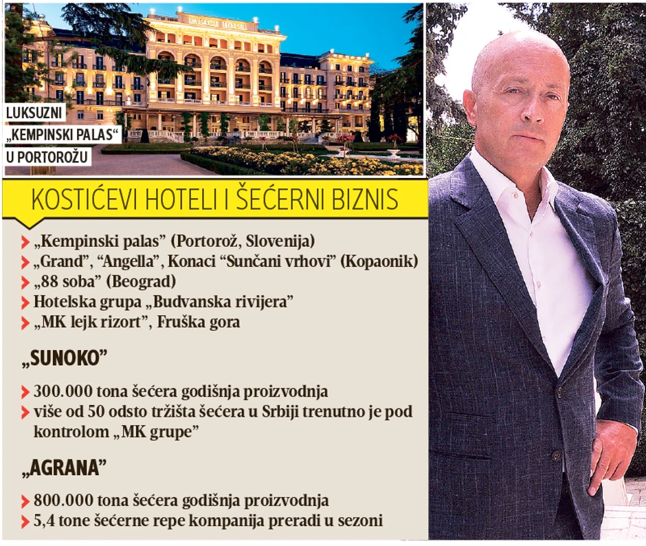 Miodrag Kostić više neće biti kralj šećera, već kralj hotela, jer će novac od prodaje šećerana uložiti u kupovinu ugostiteljskih kompanija u regionu.