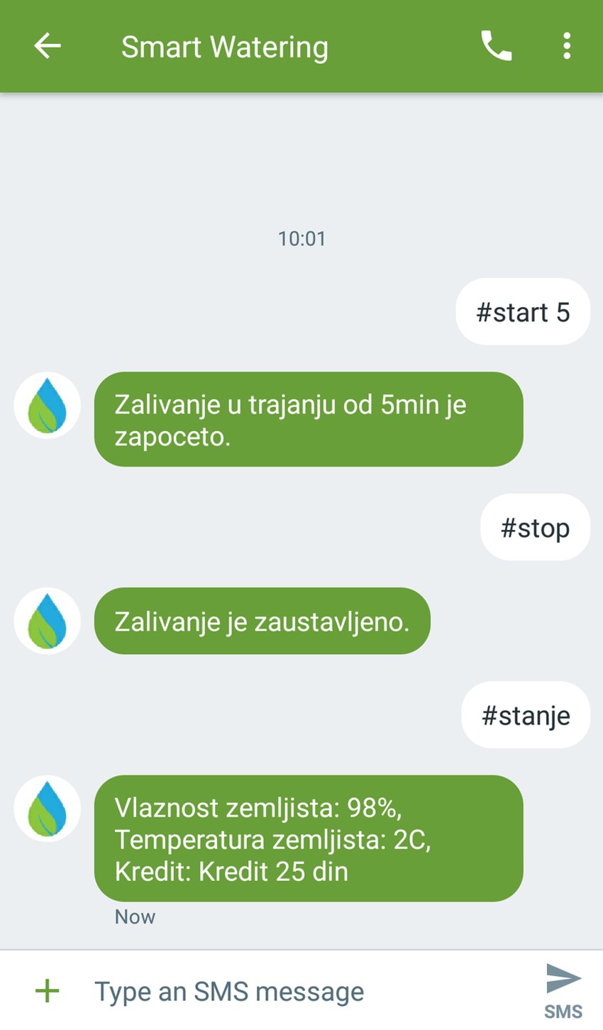 - Moguće je programirati trajanje zalivanja i to na više parcela uporedo, a korisnik slanjem sms-a sistemu u svakom trenutku može da sazna u kom je stadijumu. Postoji uvid u stanje senzora koji mere vlažnost zemljišta i nivo vode. Sistem ima alarme i ako opadne vlažnost, on pošalje sms da je ona niska i da je potrebno zaliti njivu - objašnjava Lazar.