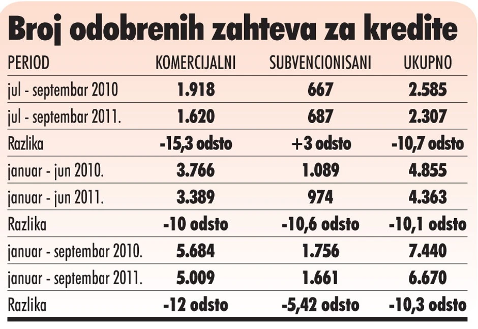 - Sada imamo rezultate mera NBS pred sobom. Po tim rezultatima se vidi da je od juna do septembra naročito primetan pad kod odobrenih komercijalnih stambenih kredita kod kojih je učešće faktički podignuto na 20 odsto. Iznos odobrenih komercijalnih stambenih kredita u trećem kvartalu manji je za 15,3 odsto u odnosu na treći kvartal 2010 - kaže za “Blic” Nemanja Komazec, državni sekretar u tom ministarstvu.