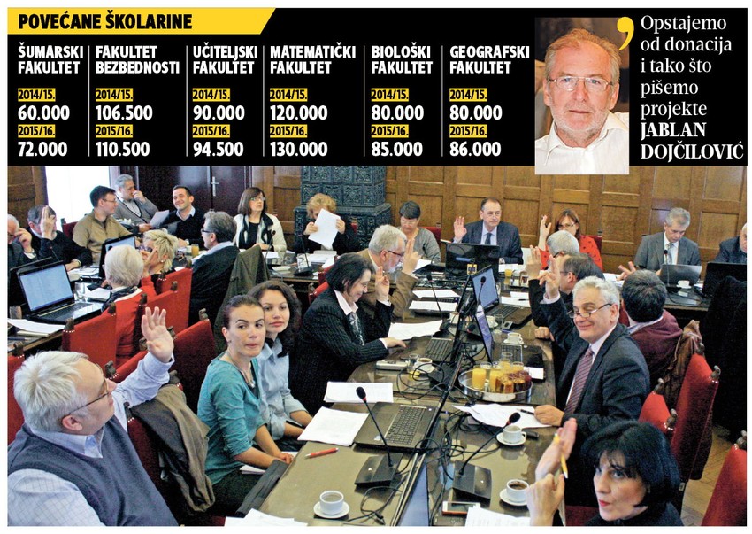 - Mi smo najviše doprineli statusu Univerziteta na Šangajskoj listi, a opstajemo tako što pišemo projekte i dobijemo pokoju donaciju. Pa opet ne pomišljamo na poskupljenje. Nema smisla da se školarine povećavaju - kaže Dojčilović.