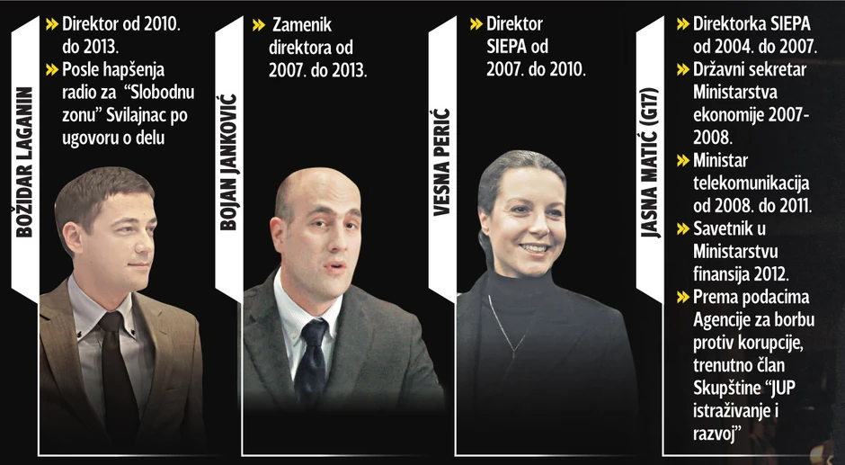 Tužilaštvo za organizovani kriminal, pored nekadašnje ministarke telekomunikacija, kako saznaje „Blic“, optužilo je i bivše direktore Agencije za strana ulaganja Božidara Laganina i Vesnu Perić, kao i bivšeg zamenika direktora Bojana Jankovića.