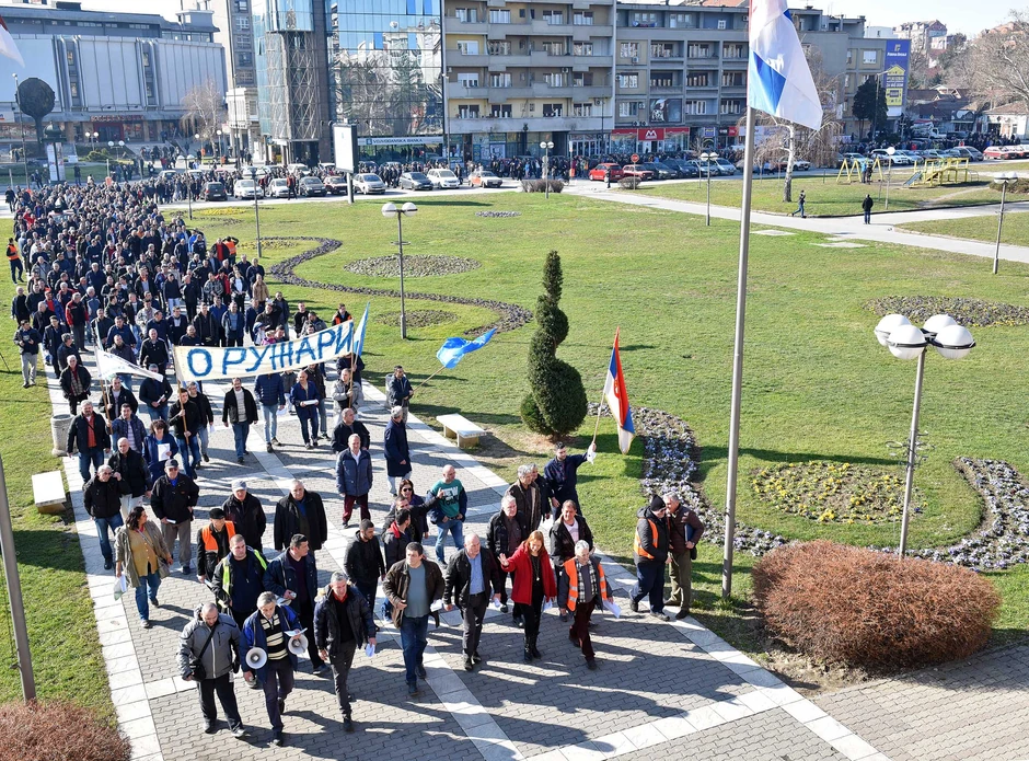 Današnji štrajk oružara počeo je u 11 časova ispred Upravne zgrade fabrike. Na protestu su radnici zatražili isplatu bonusa od po 25.000 dinara, kao i odgovornost svih u "lancu" odlučivanja zbog loših poslovnih rezultata fabrike.