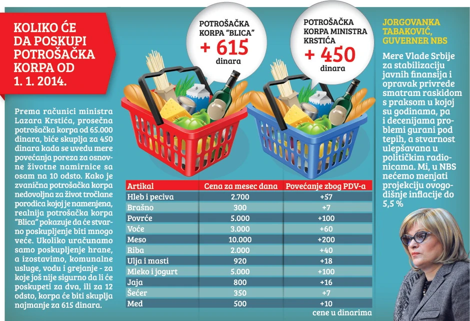 Ipak, kako za „Blic“ kaže guverner Jorgovanka Tabaković, NBS neće menjati svoje projekcije inflacije. Predložene korekcije PDV-a za određene proizvode imaće jednokratni efekat od oko 0,5 odsto - kaže Jorgovanka Tabaković, guverner NBS.