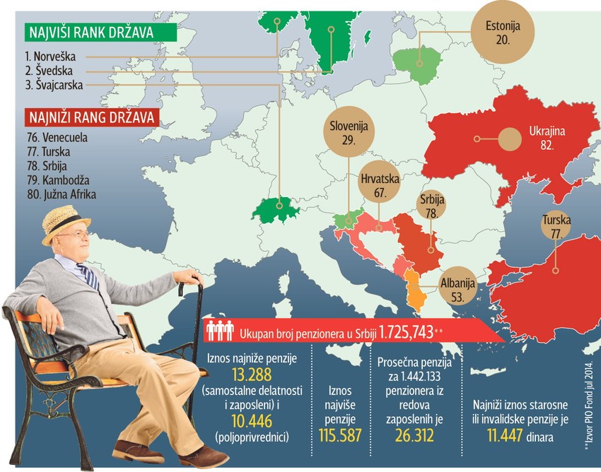 Ovo istraživanje ocenjivalo je četiri kategorije za život i to: kvalitet života, povoljnost okruženja, zdravstveno stanje i sigurnost prihoda. U pogledu mogućnosti da pruži kvalitetan život starima Srbija je čak na 92. mestu. Povoljnost okruženja je nešto bolje ocenjena, pa je svrstana na 67. mesto. Nešto je bolja situacija sa zdravstvenim stanjem jer je Srbija tu na 62. mestu. Sigurnost prihoda stavila nas je na 49. mesto.