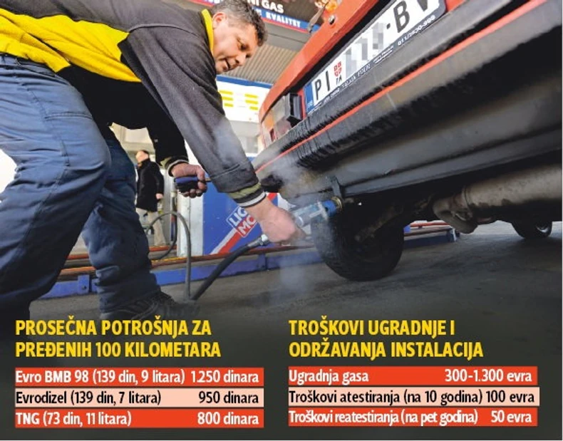 Pre samo nekoliko godina vožnja na auto-gas bila je mnogo isplativija, a vozačima ne pomaže ni to što u poslednje vreme cena TNG, kao i ostalih goriva, pada zbog pada cena nafte. Ugradnja plina isplati se samo onim vozačima koji mnogo voze, bar 20.000 kilometara godišnje, odnosno minimum pedesetak kilometara dnevno.