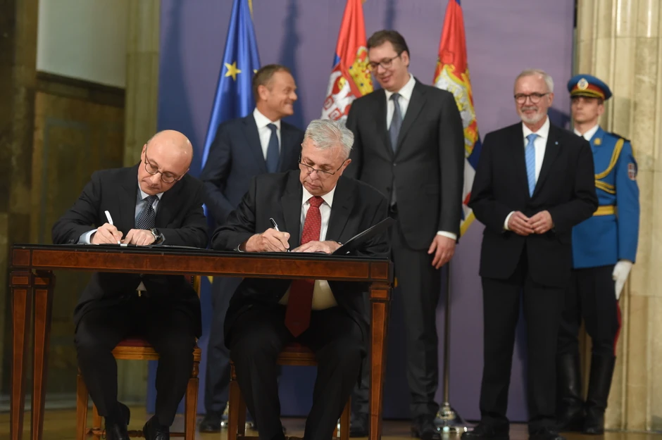 Finansijski ugovor između Evropske investicione banke (EIB) i kontrole letenja Srbije i Crne Gore (SMATSA), potipisan je danas u zdanju na Andrićeviom vencu u prisustvu predsednika Srbije Aleksandra Vučića i predsednika Evropskog saveta Donalda Tuska.