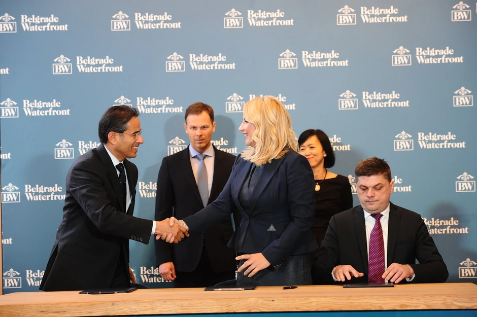 Ugovor su potpisali ministar građevinarstva, saobraćaja i infrastrukture Zorana Mihajlović, predsednik Upravnog odbora “Igl Hilsa” Muhamed Alabar i direktor “Beograda na vodi” Aleksandar Trifunović.