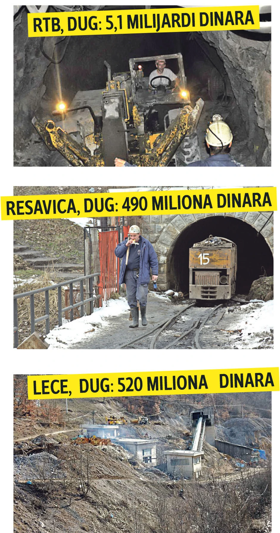 Ukupan dug je 9,3 milijarde dinara, a među prva tri dužnika, pored “Lece” su RTB sa dugom od 5,1 milijardi dinara i “Resevaca” 490 miliona dinara.