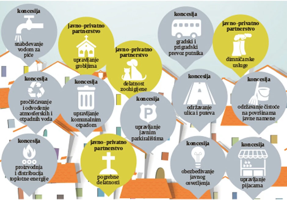 To praktično znači da će pod jasno definisanim uslovima, putem koncesije ili javno-prtivatnog partnerstva, već od naredne godine privatnici moći da uđu u sistem vodosnabdevanja, javne rasvete, održavanja javnih površina, proizvodnje i distribucije toplotne energije, obezbeđivanju javnog osvetljenja.