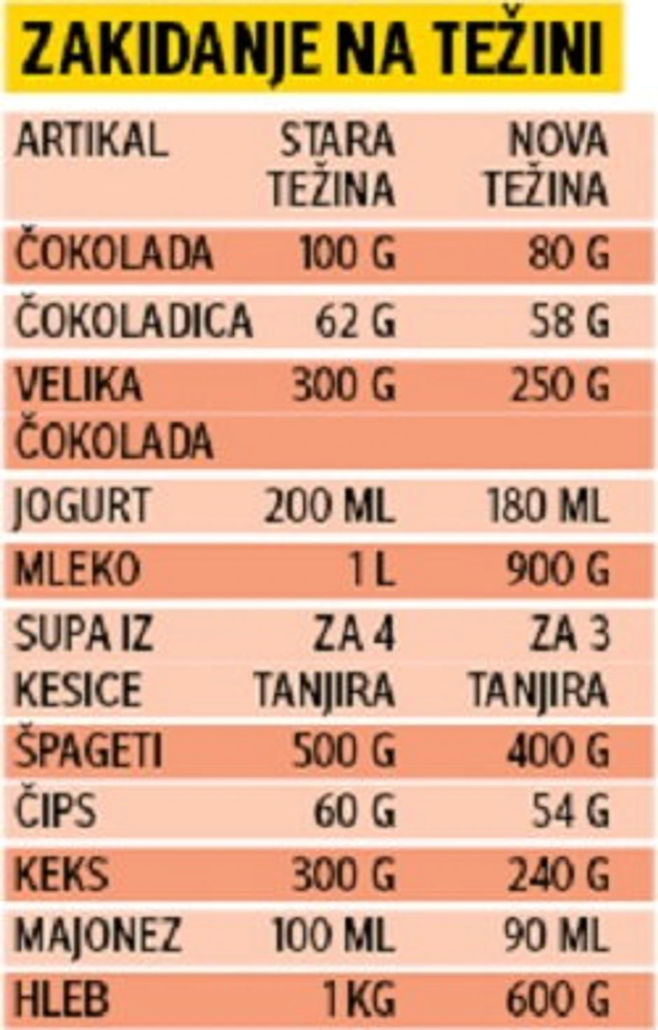 Čokolada od sto grama sada ima 80, a supa iz kesice nije dovoljna za četiri tanjira.