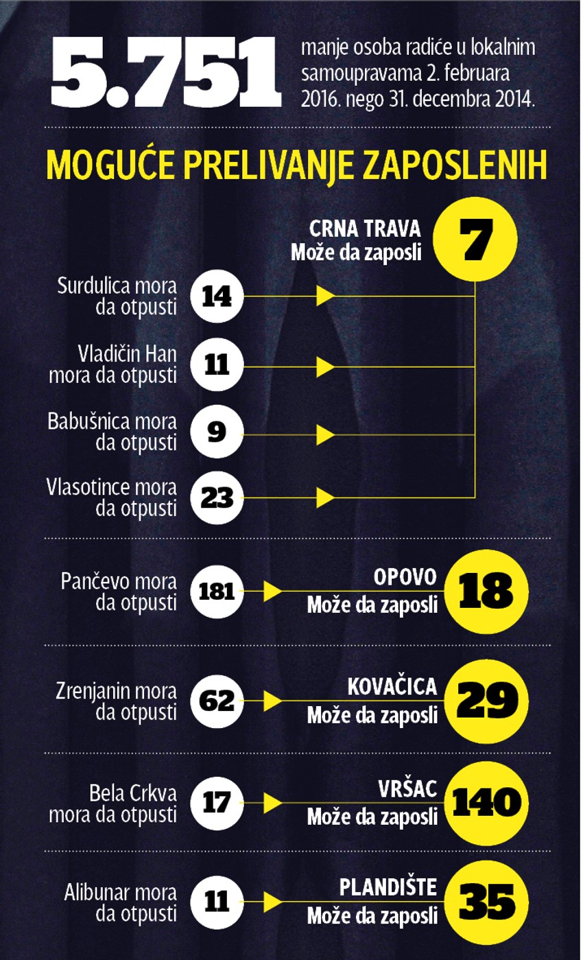Kako saznajemo, uskoro će biti moguće i da opštinska uprava i javna preduzeća razmenjuju zaposlene. Zaposleni koji su višak u jednoj opštini mogu da pređu u drugu koja ima manjak radne snage.