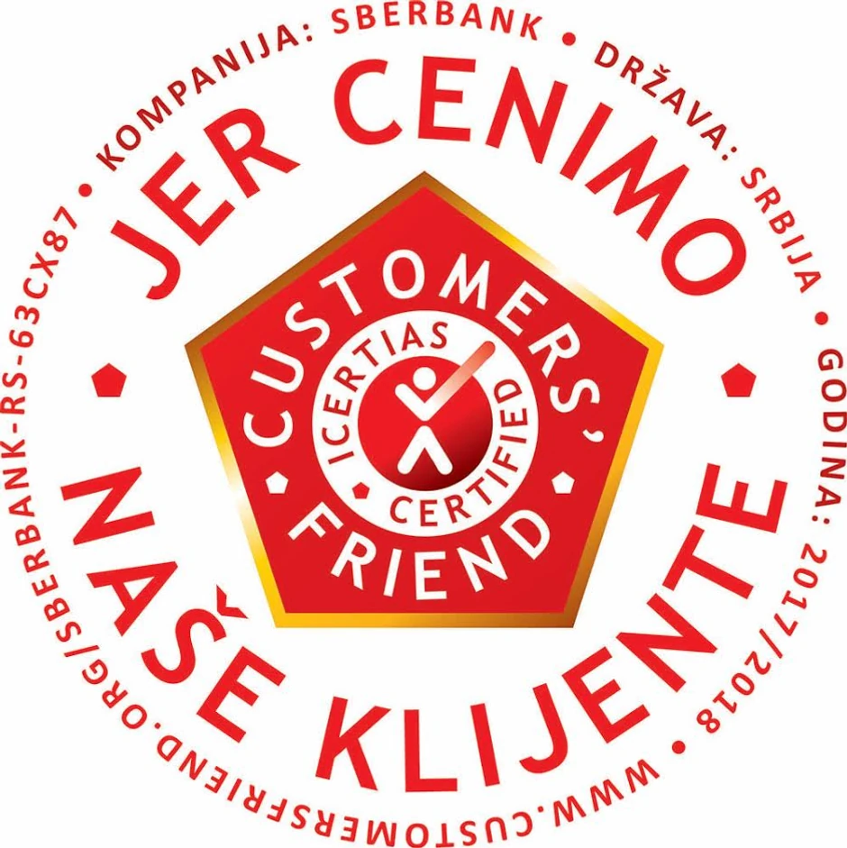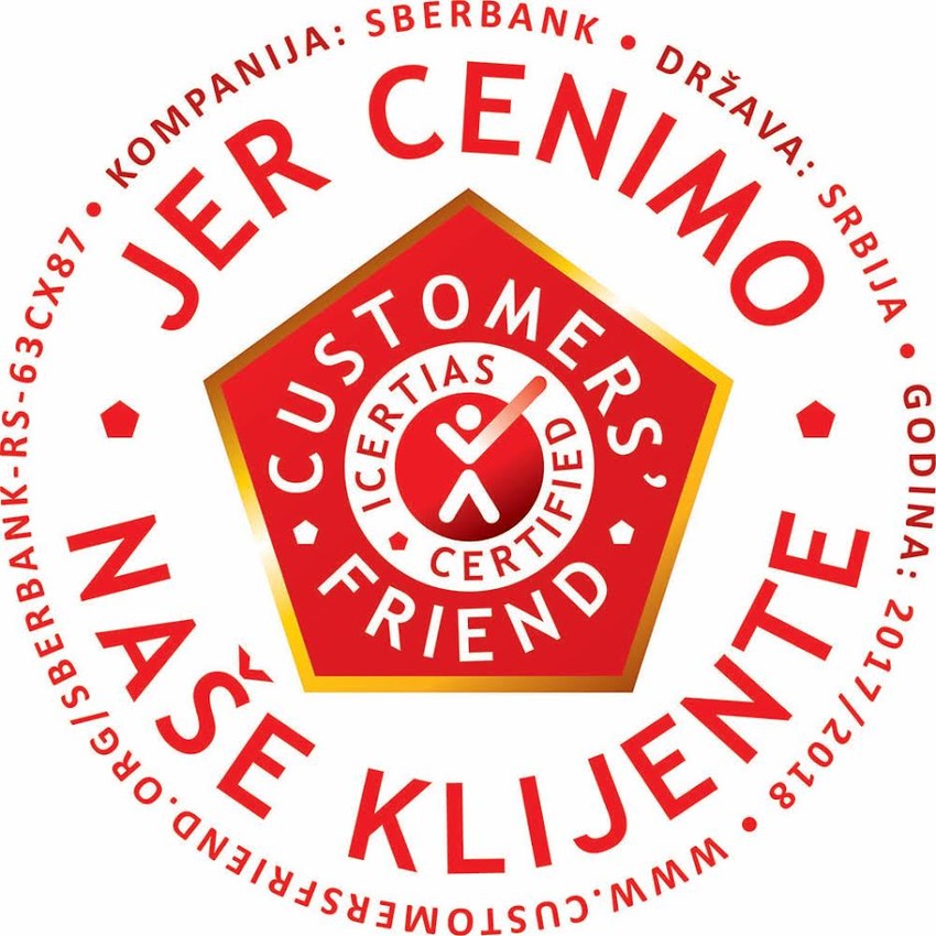 Sberbank Srbija kao prva banka u Srbiji, pristupila je prestižnom međunarodnom sertifikacijskom programu "Customers' Friend" potvrdivši time izrazito visok nivo kvaliteta usluge i odnos sa svojim klijentima i zaposlenima.