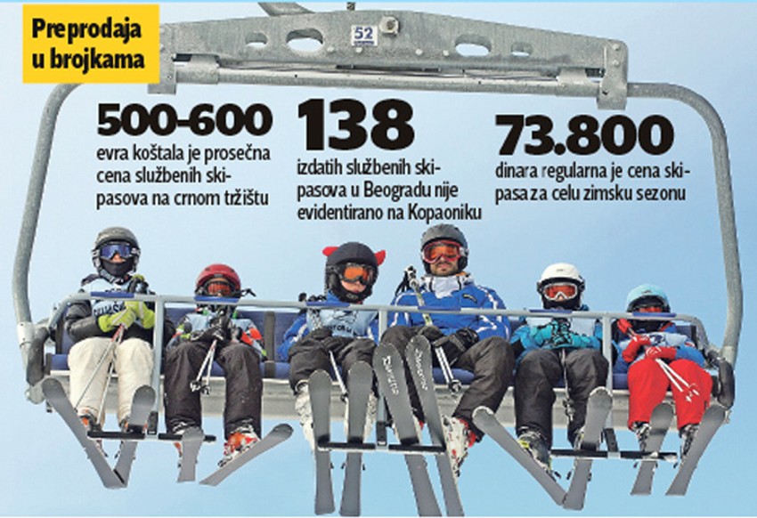 Ako se ima u vidu da su te karte preprodavane po ceni od po 500 ili 600 evra, može se govoriti o višemilionskoj zaradi. Nedozvoljeno korišćenje službenih ski-pasova utvrdili su i redari na skijalištima na Kopaoniku, a kupci ovih karata su im zvanično, kroz izjave, priznavali kako su dolazili do ovih "propusnica".