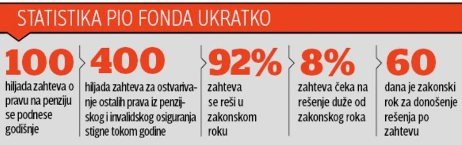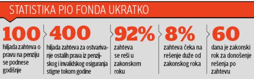 U Fondu penzijskog i invalidskog osiguranja (PIO) na rešenje čeka čak 40.000 predmeta koji nisu obrađeni u zakonskom roku od dva meseca.