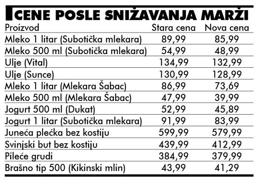 Na prvi pogled videlo se da su neke cene snižene, a zaposleni su naveli da je korekcija cena urađena još 2. januara. Međutim, iz dokumentacije koju je inspektorka dobila na uvid nije moglo da se zaključi kolika je marža na te proizvodne. Da je „Idea“ snizila marže utvrdilo se kontrolom u sedištu kompanije.