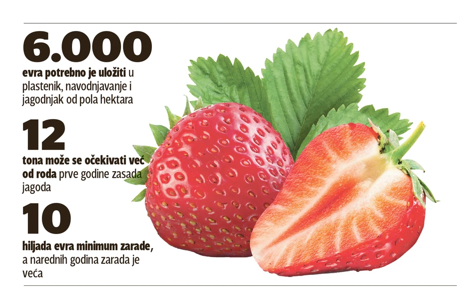 Nema voćke koja donosi bržu zaradu i manja ulaganja od jagode pa sve više poljoprivrednika kreće u ovaj biznis. Početak dodatno olakšava i to što nije potrebna velika površina, ljudi mogu da žive i od 50 ari pod zasadom jagoda. Za početnike je uvek savet da ne idu na veće parcele, jer je jedan hektar u prvoj godini već ozbiljan zalogaj.