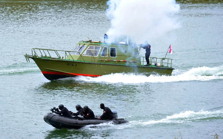 Kapaciteti srpskih snaga pokazani su i na reci, gde su na jednom od splavova savladani teroristi.