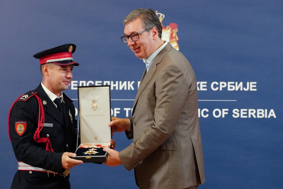 - Svoju dužnost obavlja časno i profesionalno. Naša zemlja, Republika Srbija, kao i porodica Miloša Jevremovića moraju da budu ponosni - poručio je Vučić na ceremoniji odlikovanja u Predsedništvu.