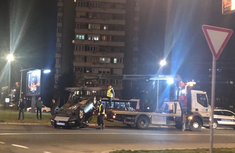 Sudarila su se dva automobila na raskrsnici ulica Pariske komune i Mihajla Pupina, nakon čega se jedan od njih završio na krovu.