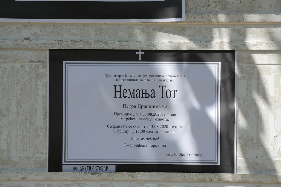 Tromesečna beba N. T., koja je preminula od posledica povreda koje joj je naneo otac Mišel Tot, sahranjena je danas na Vršačkom groblju. Mučno ubijeni dečak sahranjen je u malom belom kovčegu, a na večni počinak ispratili su ga članovi najužeg kruga porodice...