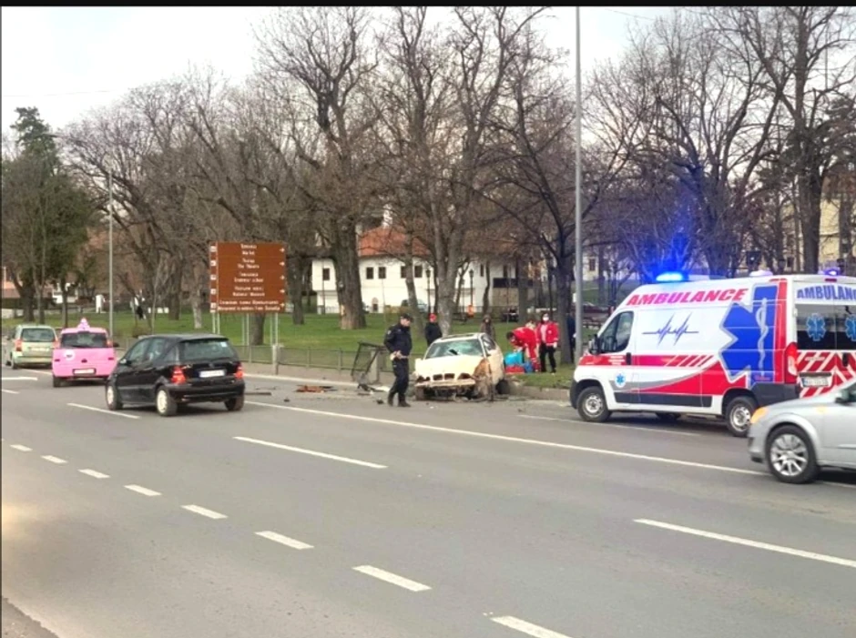 U saobraćajnoj nezgodi oko 17 sati u Kragujevcu kod Spomenika palim Šumadincima na ivici malog parka u blizini "Zelene pijace", automobil BMW je udario u ogradu, okrenuo se i pokosio nekoliko stubova.