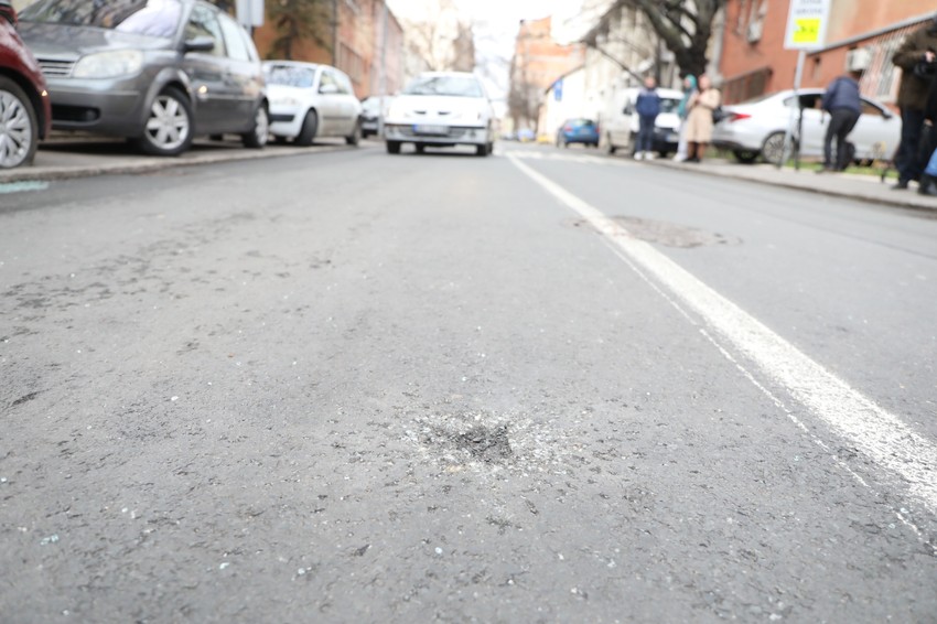 Tragovi srče nalaze se svuda po ulici i dalje, a geleri su oštetili i staklo na trafici sa druge strane ulice.