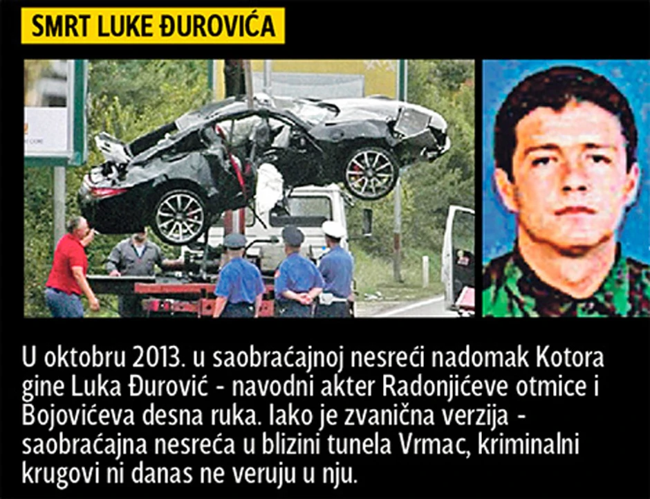U međuvremenu, 2011. godine ubijen je i Danilo Radonjić, otac nestalog Slobodana Radonjića sa kojim je sve krenulo. Kao naručilac njegovog ubistva naveden je, razume se, Luka Bojović, a izrešetan je u profesionalnoj sačekuši u Zemunu u Ulici cara Dušana.