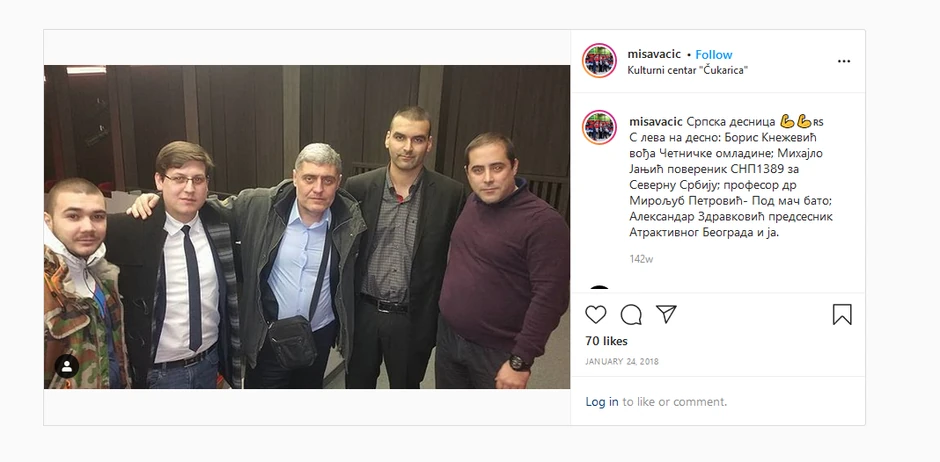 Knežević, osim što je batinaš "Levijatana" i osoba koja je po svemu sudeći zadužena da obavlja najprljavije poslove za ovaj pokret, da presreće ljude, preti im, udara ih i slično, na čelu je organizacije "Četnička omladina". A očigledno je i da uživa da se kreće u društvu potkovanog ultradesničara Miše Vacića, koji je već je početkom dvehiljaditih godina stekao reputaciju "opasnog momka", a onda je 2013. dobio i uslovnu kaznu od godinu dana zbog širenja diskriminacije protiv LGBT populacije, nedozvoljeno držanje oružja i ometanje službenog lica u obavljanju dužnosti.