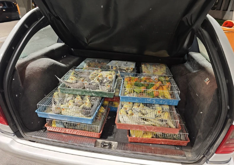Utvrđeno je da se u tom skučenom prostoru nalazilo 380 jedinki tri vrste papagaja (rozenkolis, nimfe i kozice), za koje putnik nije imao nikakvu prateću dokumentaciju.