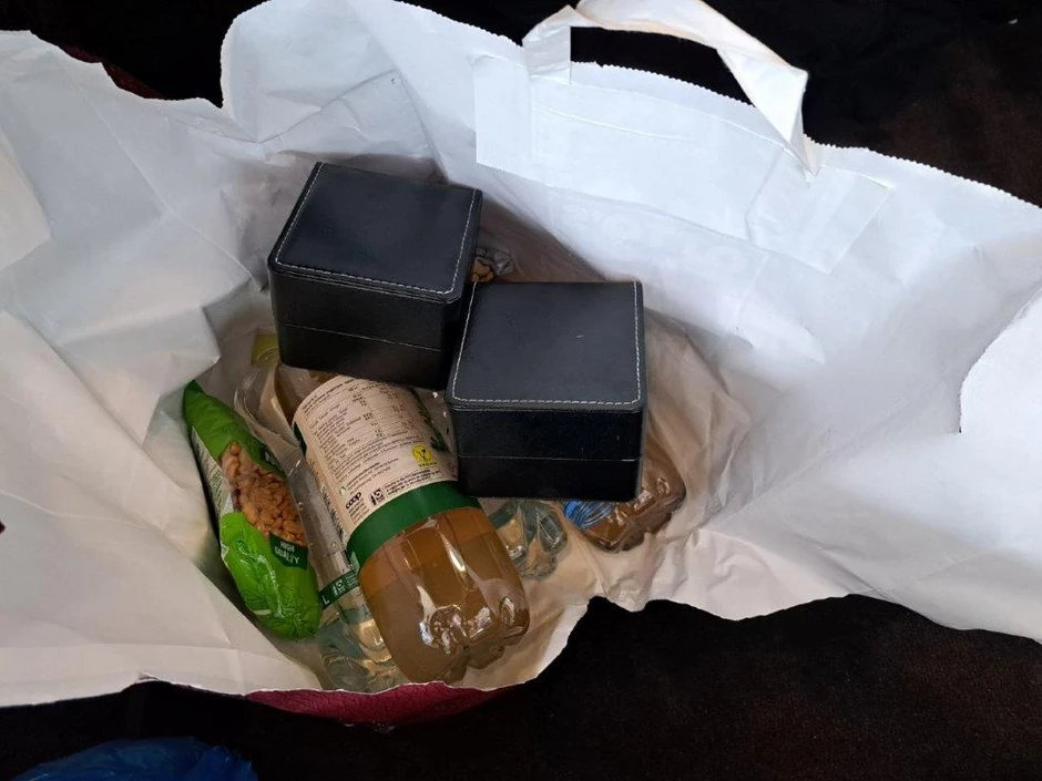 Carinski i policijski službenici su tokom kontrole, iza zadnjeg sedišta, u kesi sa grickalicama i osvežavajućim napicima, pronašli i dva ručna časovnika marke ''Rolex Daytona''.