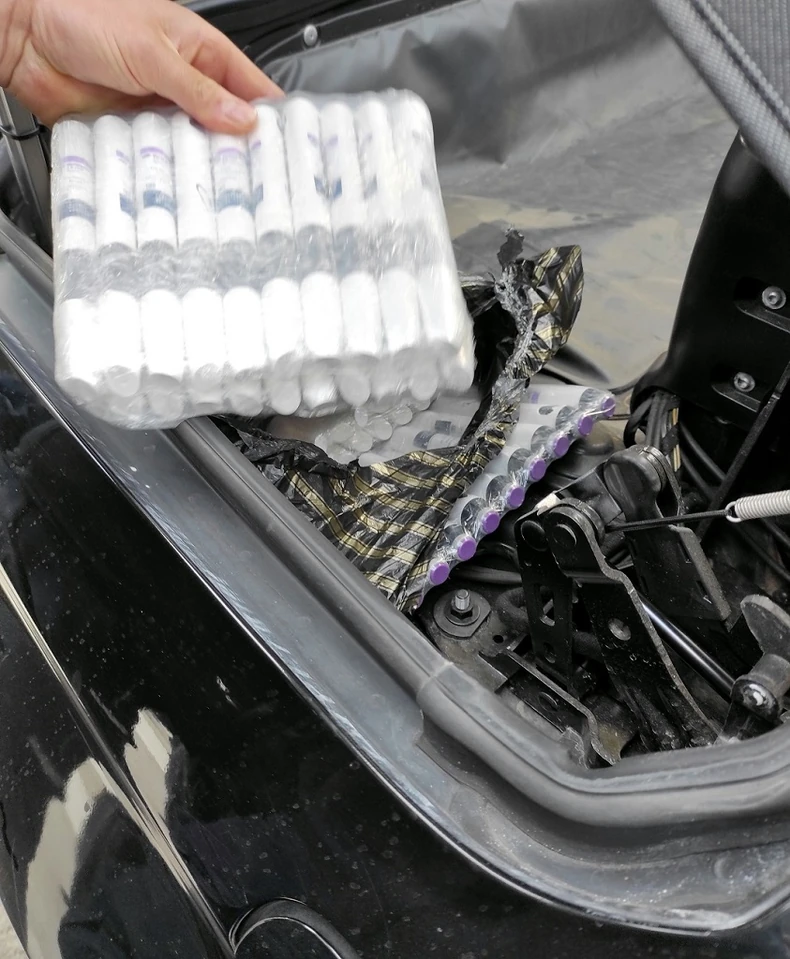 Carinici su juče na prelazu Gradina, u saradnji sa policijom, sprečili neobičan pokušaj krijumčarenja skupih injekcija sakrivenih u prostoru za smeštaj pokretnog krova jednog automobila.