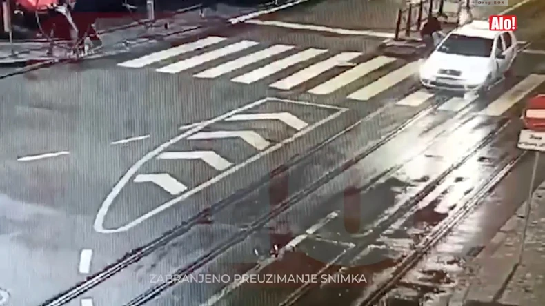 Sledeći deo snimka prikazuje kako trči kod Beton hale, potom trči preko ulice i pokušava da zaustavi teksi.