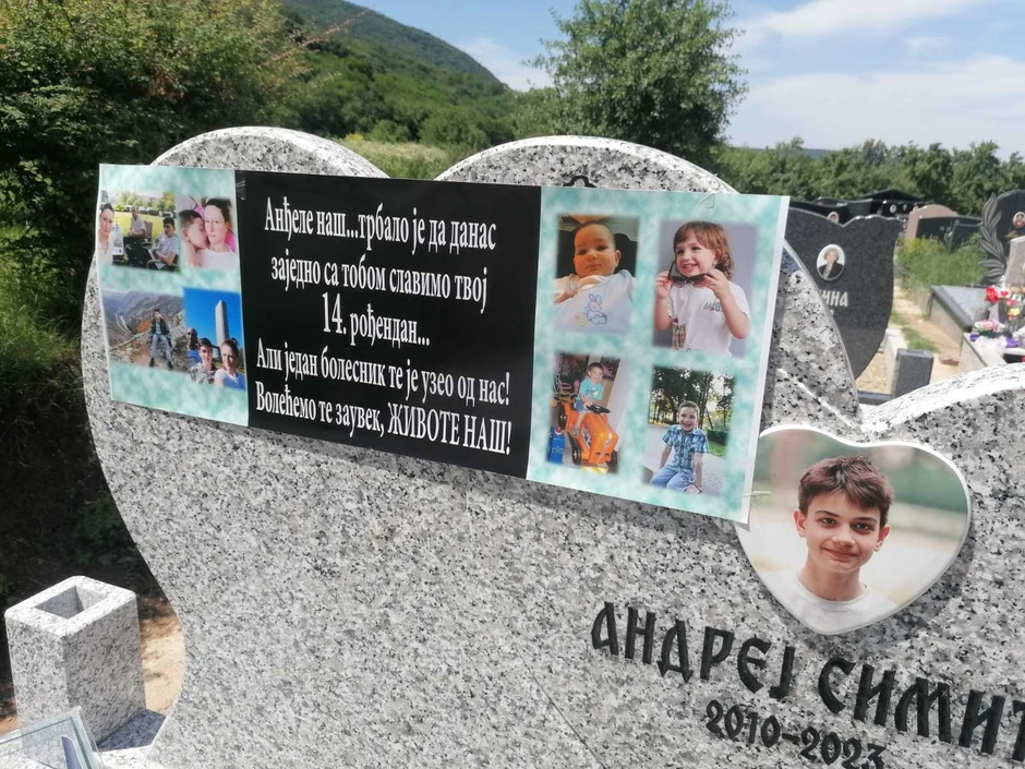 -Anđele naš, trebalo je da danas zajedno sa tobom slavimo tvoj 14.rođendan. Ali jedan bolesnik te je uzeo od nas. Volećemo te zauvek, živote naš - piše u poruci na Andrejevom grobu.