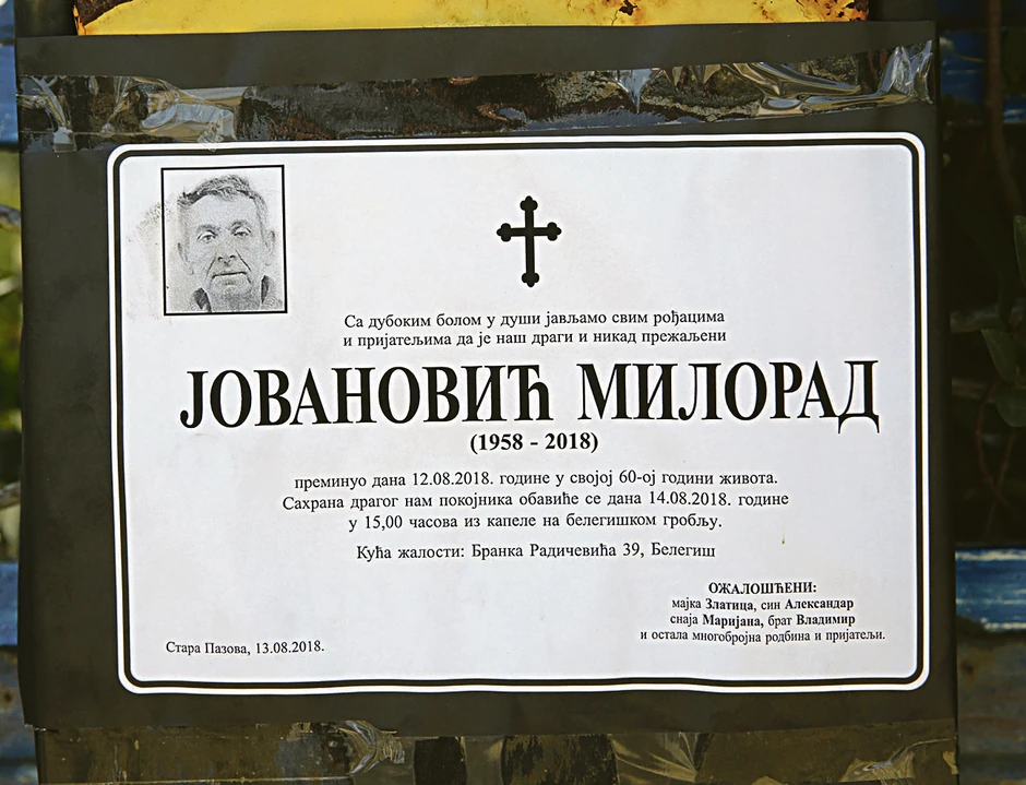 Milorad Jovanović je sahranjen u utorak na lokalnom groblju, a iza sebe je ostavio dva sina i petoro unučadi. Bio je razveden i živeo je sa bolesnom majkom, ali njegovu kuću često je ispunjavala graja unučadi.